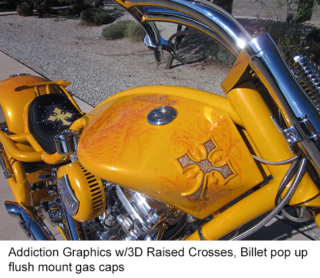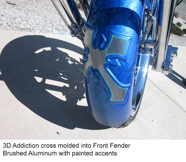 3D Crosses - Molded into Steel Front Fender, and Gas Tanks as follows: