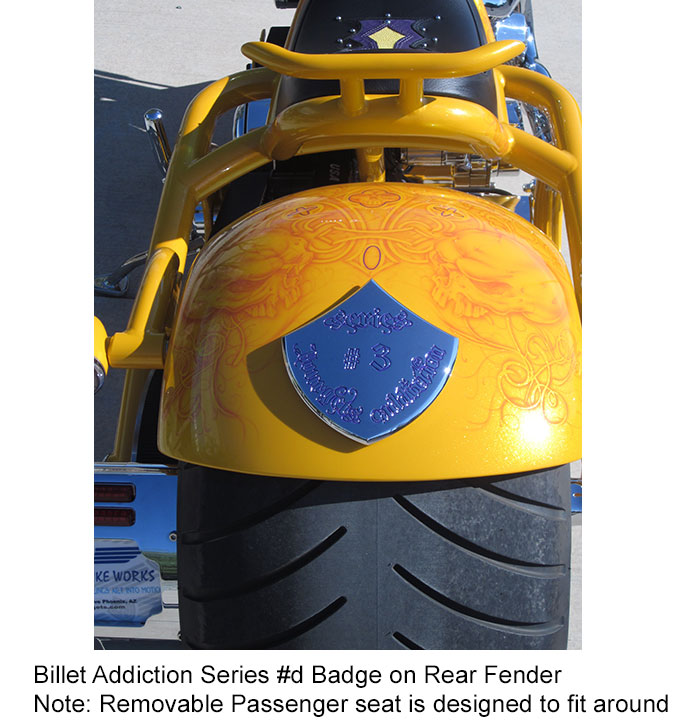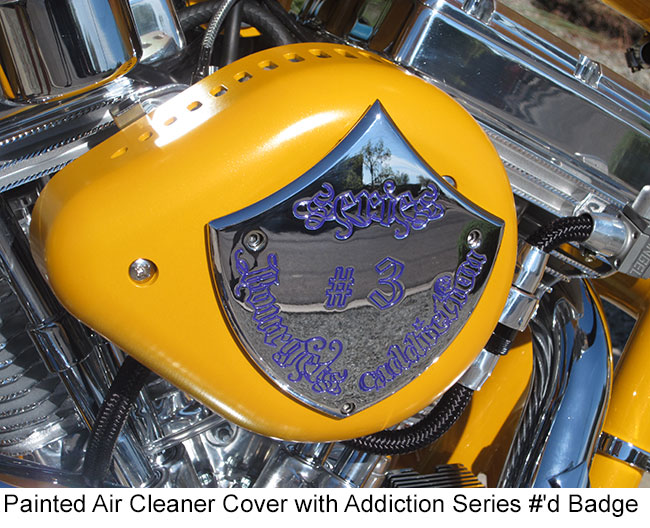 Addiction #'d Billet Badges on Air Cleaner and Rear Fender