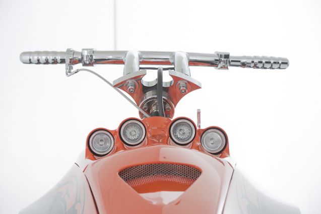 Bourget’s manufactures in house the sub-frame assembly, handlebars and controls, foot controls, floorboards, Suspension system- A-arms & spindles, License plate bracket, seat, and fuel cell. Additionally the headlight housing and dash are CNC Machined in house from solid billet aluminum. The Bourget’s designed body is handcrafted from aluminum by Jeff Davis of Precision Metalcraft and the steel fenders are fabricated in house at Bourget’s